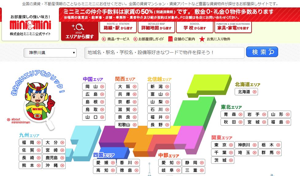 ミニミニは全ての物件で仲介手数料が家賃の半分です。