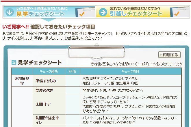 (3)見学・引っ越しチェックシートが掲載されており、結構便利。