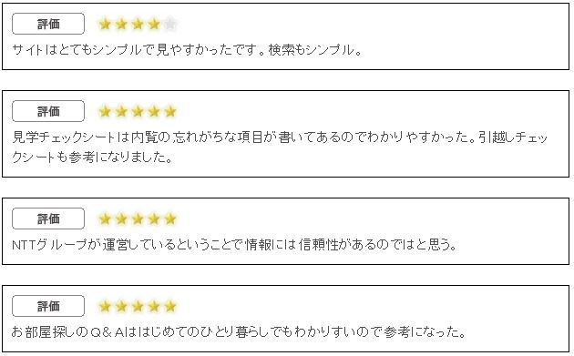 お部屋探しの手引、引っ越しチェックシートが良いという意見と、サイトが見づらいなどの意見がありました。
