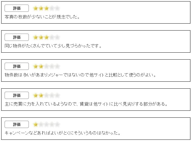 ただし、口コミ情報そのものが殆どないので、HOME4Uの賃貸利用者は非常に少ないのではないかと思います。
