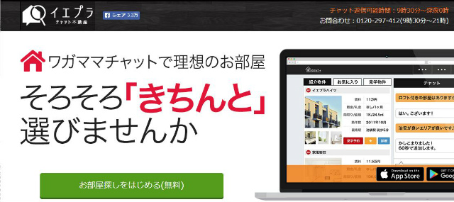 しかし、従来の不動産情報サイトを使いながら、「イエプラ」というオンライン型チャット賃貸不動産提案サービスを使えば、①と②運が良ければ③も満たすことが出来ます。