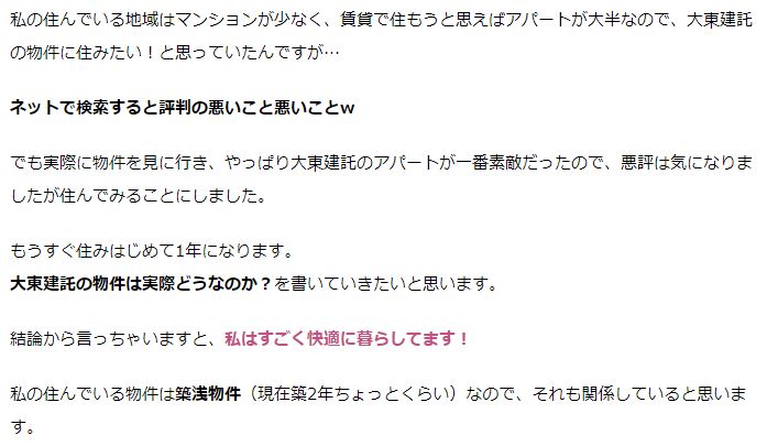 情報元:大東建託の評判と苦情!住人が暴露します。