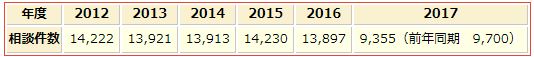 国民生活センターへの賃貸住宅の敷金、ならびに原状回復トラブルの相談件数は次になります。