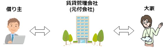 - 「借り主」⇔「賃貸管理会社」⇔⇔「大家」