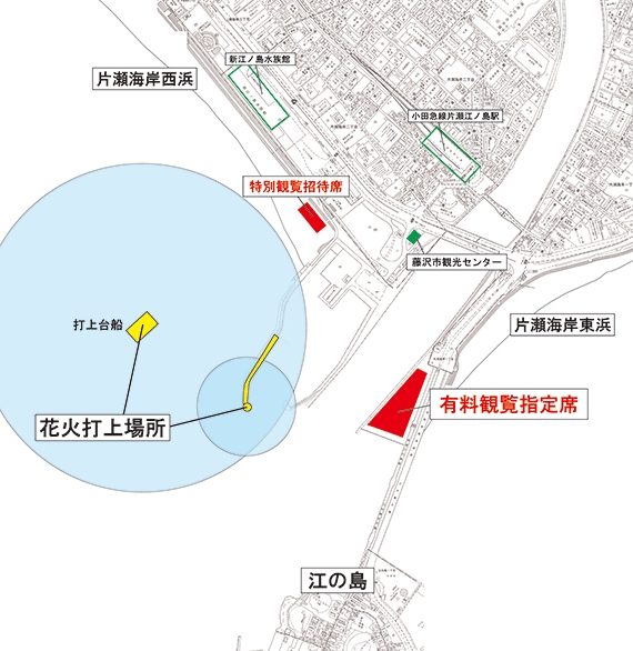| 打ち上げ場所 | 打ち上げ場所を地図で見る 交通 小田急片瀬江ノ島駅から徒歩2分、江ノ島電鉄江ノ島駅から徒歩5分、湘南モノレール湘南江の島駅から徒歩7分、東名厚木ICから車で50分 |