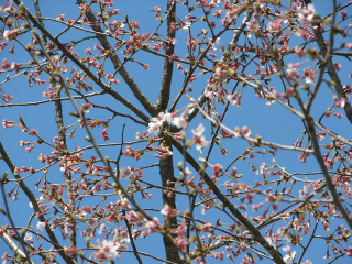 ソメイヨシノと比べて1か月ほど早く開花します。