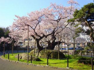 岩手県盛岡市にあリ、巨大な花崗岩の割れ目から育ったエドヒガンザクラのことで、直径約1.35m、樹齢360年を越える桜である。