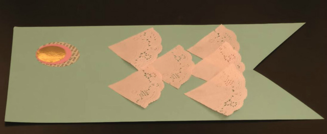 Step5 カットしたレースペーパーを糊でうろこっぽく貼り付ける