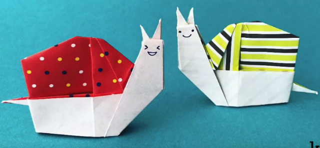 今度は立体的なカタツムリです。 立体化するところが、結構難しいですが丁寧に折れば誰でも出来ます。