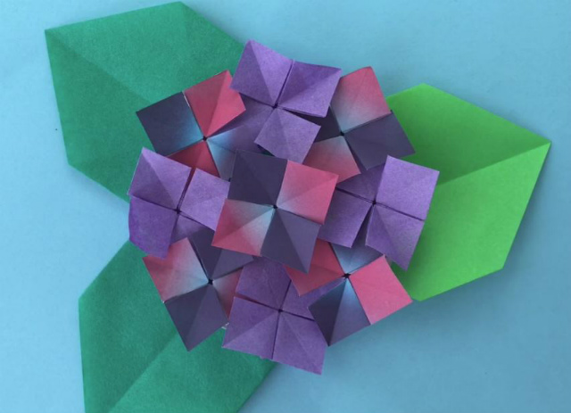 あじさいの折り紙のご紹介です。 他の折り紙と比較するとかなり難易度が上がりますが、ぜひ挑戦してみてください。