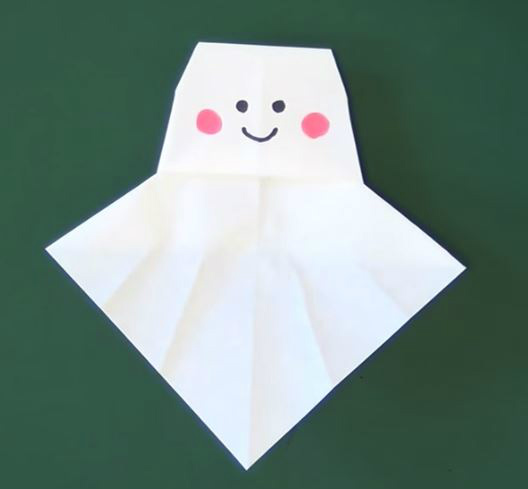折り紙1枚とマジックペンだけで作る「てるてるぼうず」です。 とてもカンタンなので、お子様にもおすすめです。