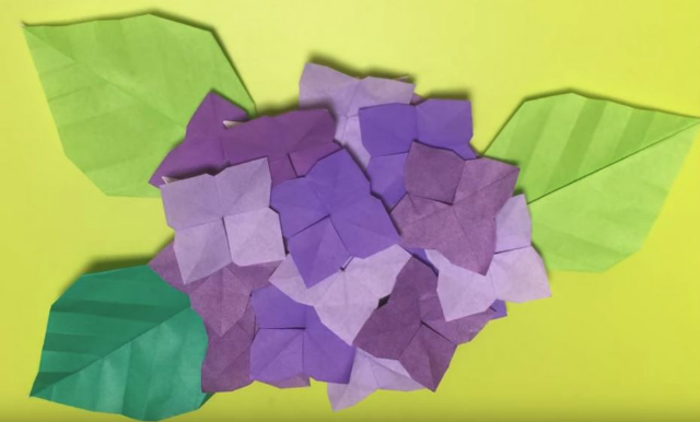 折り紙1枚でできる何度低目のあじさい。 お子様にもおすすめです。