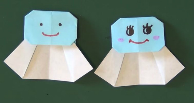 子供が喜びそうな、カワイイしずく折り紙。 顔の書き方しだいで、楽しみが変わる。