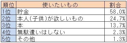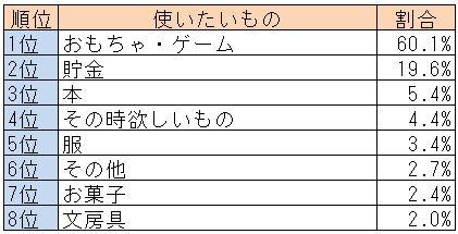 親は貯金を望み、子供はおもちゃやゲームを買うことを望むという、予想通りの結果が出ています。