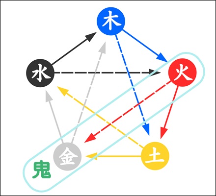 「火」→「金(鬼)」という関係があり、鬼は火を恐れるのです。