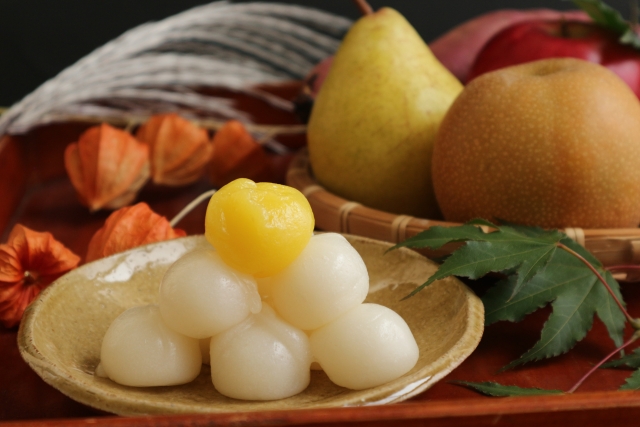 旧暦の8月15日の満月の日を十五夜と呼び、月見団子やススキを供える行事。