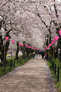 細長い公園内には約1000本のソメイヨシノが約1kmの距離にわたって見事に咲き誇ります。