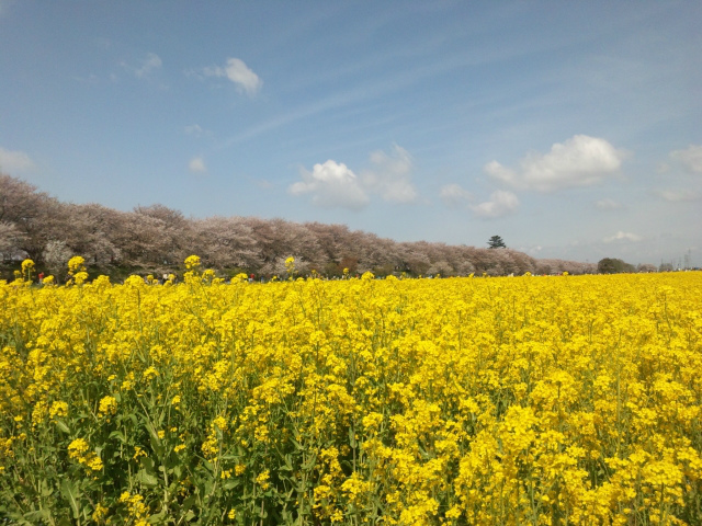 また、周辺には菜の花畑が続き、黄色い綺麗な花を咲かせ、ソメイヨシノと相まって綺麗な風景を演出してくれます。