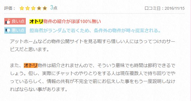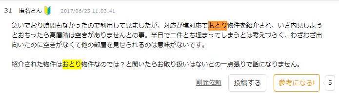 - 口コミ情報では、おとり物件がない・あるの両方が同じぐらいある