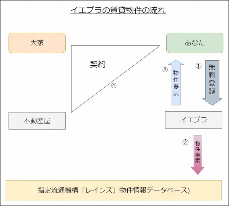 イエプラから提示される物件は、良いものが多いという説がありますが、これは果たして本当でしょうか?理屈から考えるとイエプラだからといって物件の質が高いということはないと言えます。それは大本の物件情報データベースがレインズだからです。イエプラも他の不動産屋もこのレインズの物件情報を参照して、提示しているので、違いが出るはずがないのです。