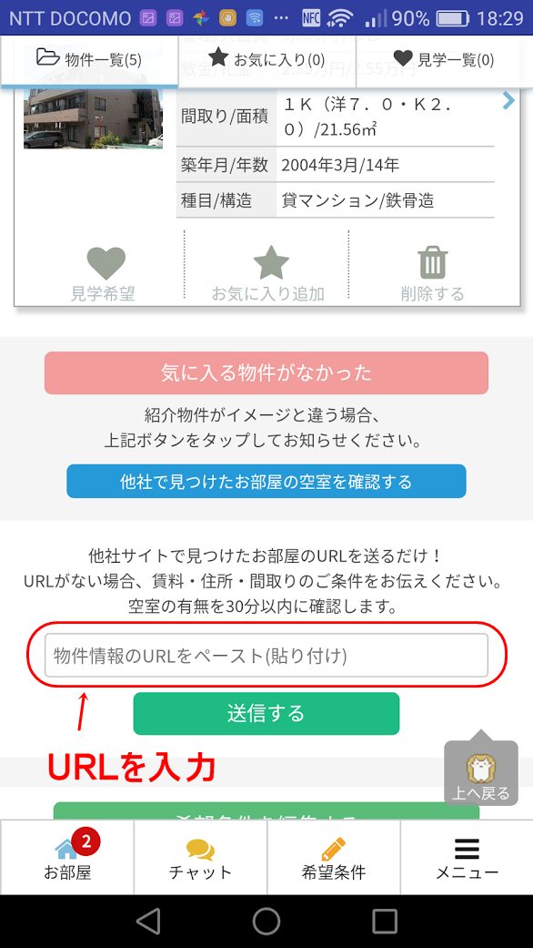 ネット上にあるSUUMOやHOME'Sなどの賃貸物件情報サイトで見つけた物件を、チャットするとほとんどの物件で対応してくれます。