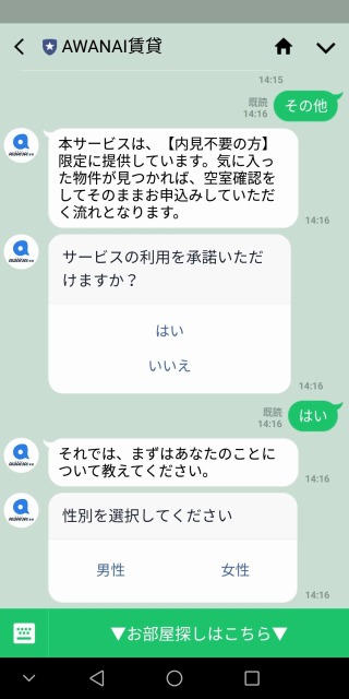 AWANAIは、LINEに登録しても積極的に物件情報を提案してくれるという感じではありません。