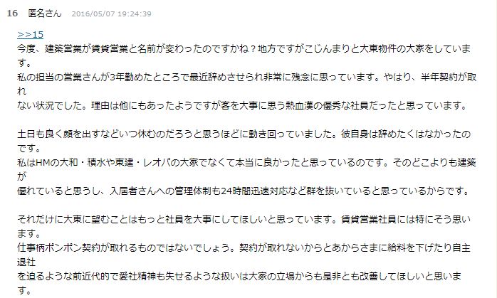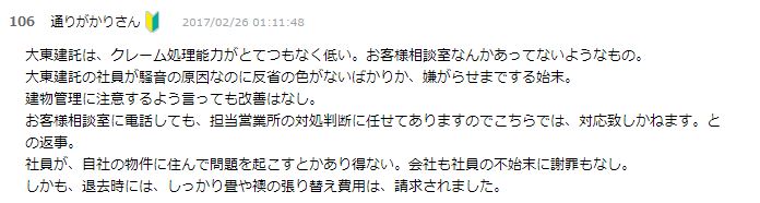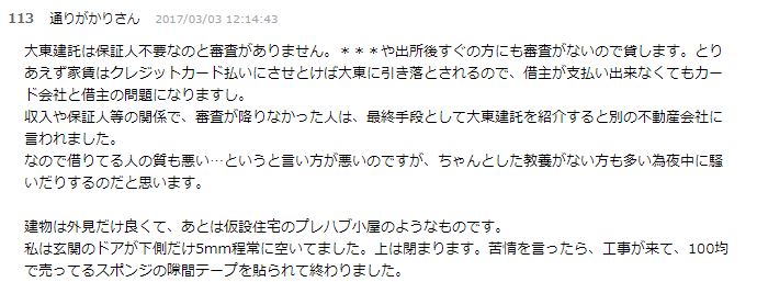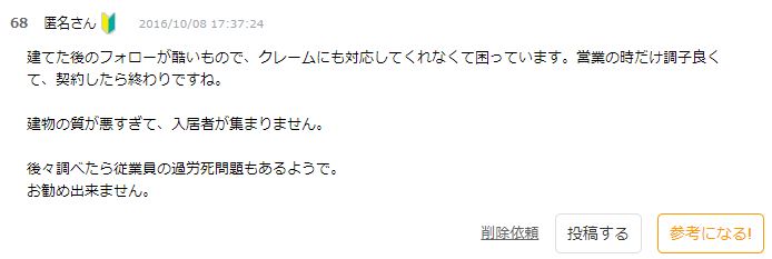 1部賃貸オーナー側の口コミの中には、大東建託の建築はしっかりしているという口コミもありましたが、それは少数です。