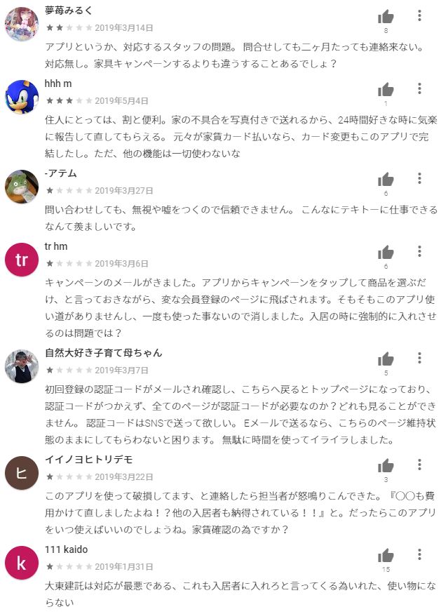 5. 大東建託はDK SELECTアプリを半強制しているにもかかわらず、アプリの不具合などで却って不便を生じさせていることに対して怒りを買っている。