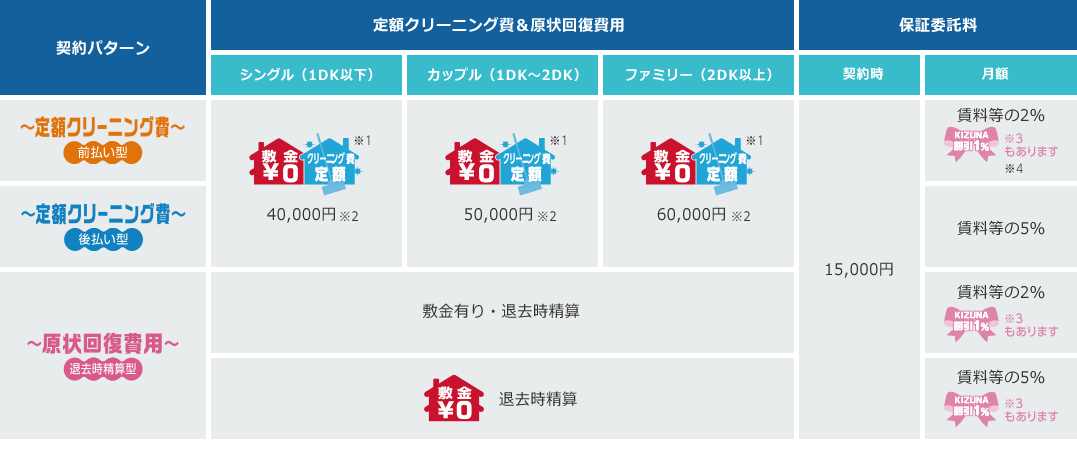 通常の物件では、保証料の金額は明記されず、契約時に個別で家賃☓○%と明示されますが、ハウスリーブでは一律の料金設定になっています。