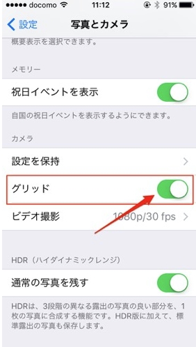 ↓グリットを表示させて、被写体の位置・水平を確認する