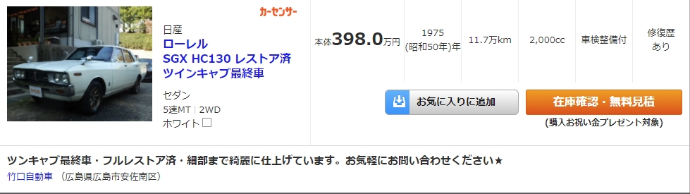 番組では、世界に30台しかないレアカーで、中古市場では700万円程するそうです。
