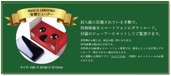 今年も昨年に続いて、安室奈美恵さんのコラボ企画になっており、楽曲「Christmas Wish」がそのままケーキとなって販売され、VRミュージックビデオで360度の角度から安室奈美恵さんの姿を楽しむことができる特性ピューアーが、ケーキ購入の特典になっています。