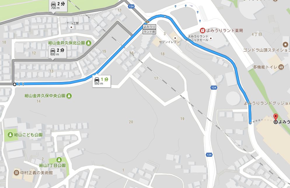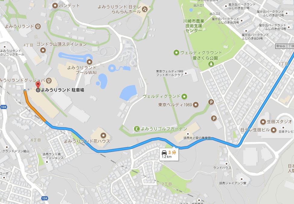 ①行きのルートは「よみうりランド」の正面ルートは避けましょう。