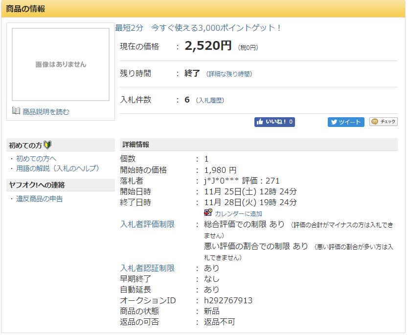 モバオクでは、新品未開封品がなんと800円で落札されています。