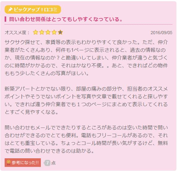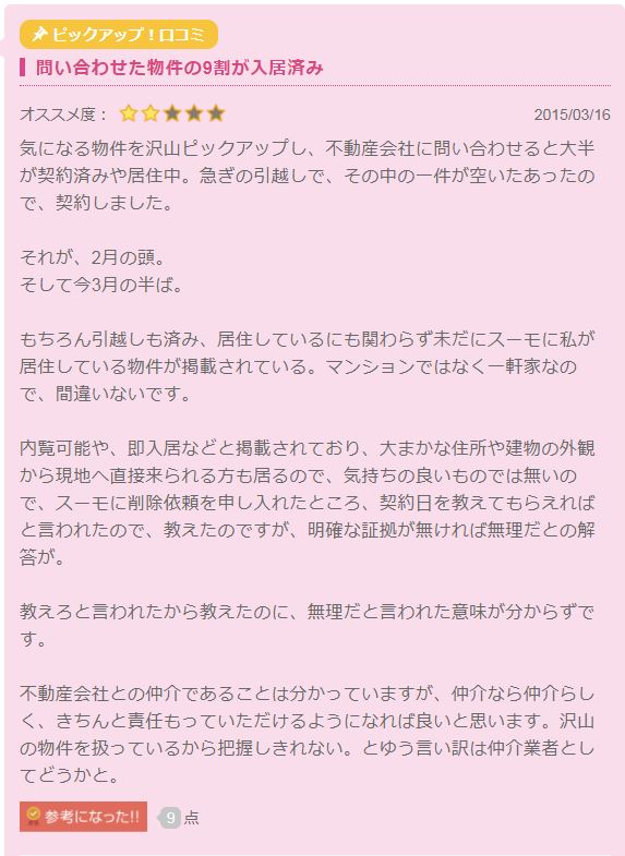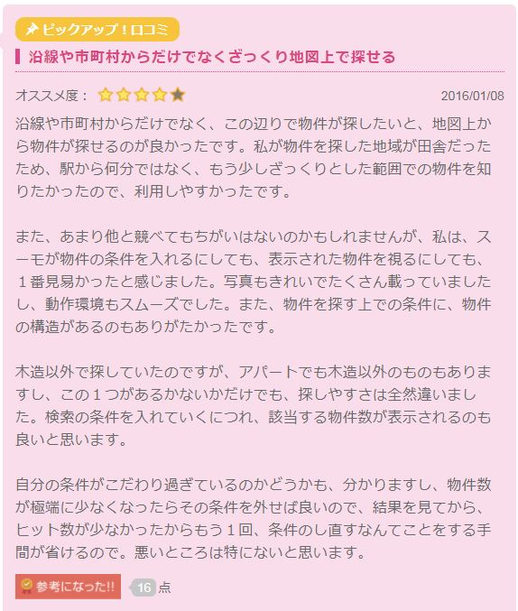 SUUMO(スーモ)の口コミ情報を拾ってみました。