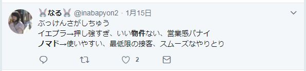 ノマドのチャットは売り込みがあまりなくあっさりしている。 - 仲介手数料を安くしたい人。