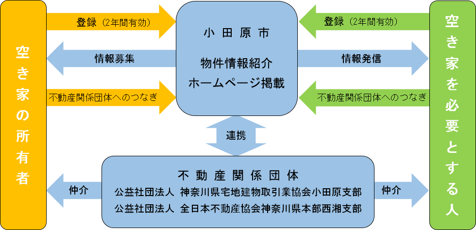 ↓は神奈川県小田原市の物件取扱の流れを書いた図ですが、ここの場合は、宅建協会、不動産協会に仲介をしてもらうことが前提になっています。