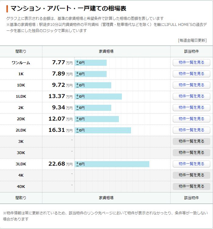この相場を知るには、ホームズ(HOME'S)のサイトが重宝します。